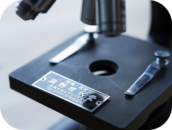 新オフィスの事務所入り口に、昔の顕微鏡を展示しています。